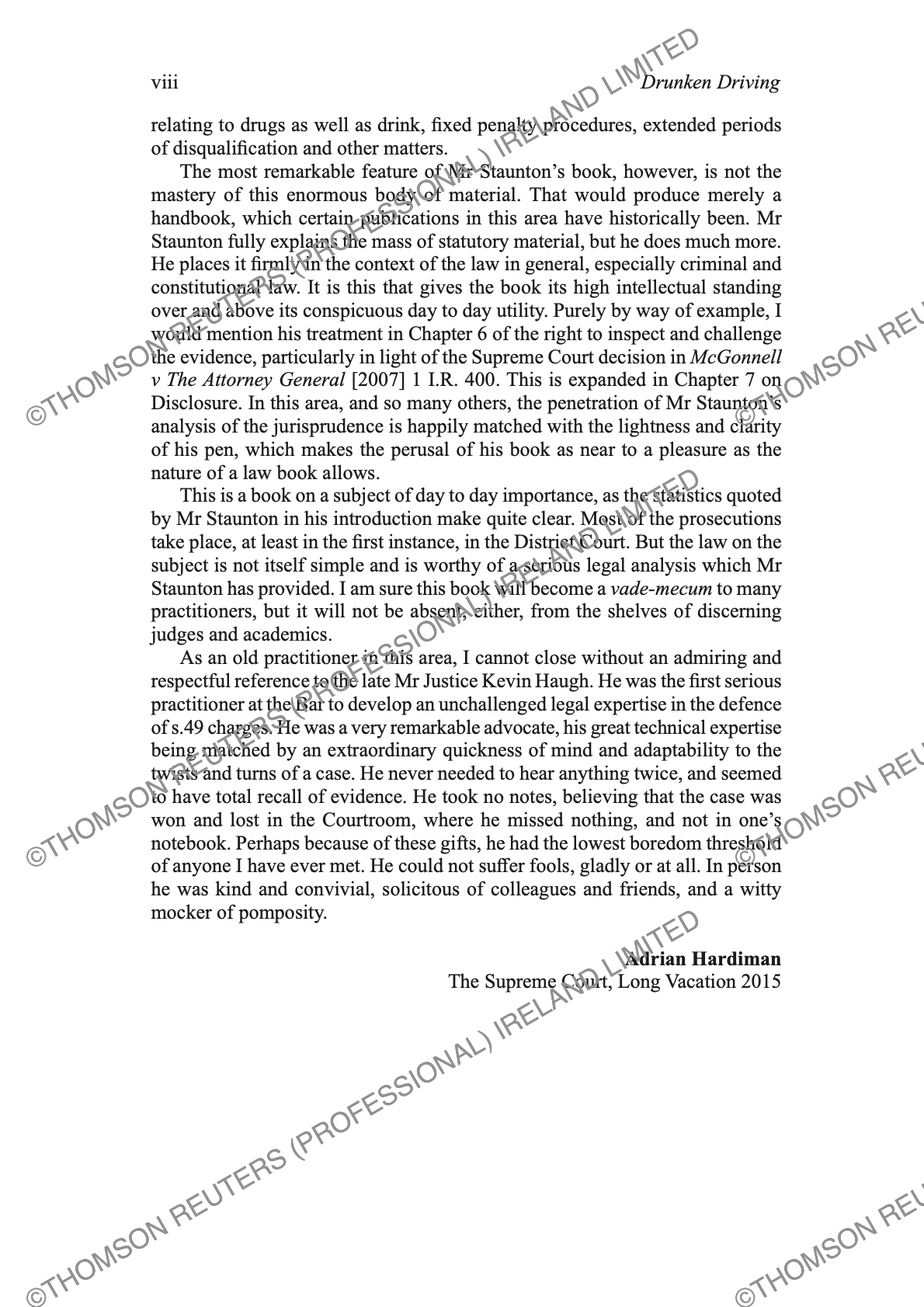In April 2021, Thomson Reuters Round Hall published the second edition of my book "Drunken Driving".
